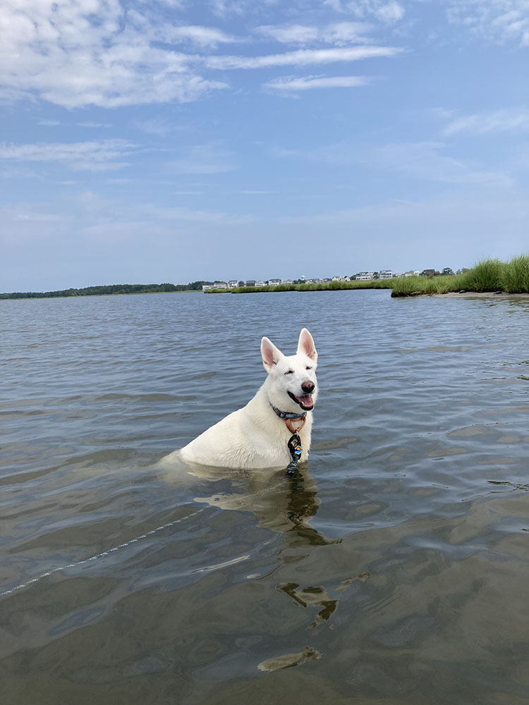 Josie was/is the dog of a lifetime and it was our good fortune to choose her. She was well known in our neighborhood for her sweet disposition and good girl behavior. So good, so sweet, and always happy to be with us, I think she knew how much we loved her. We took no vacations without for the 4 years we were blessed to have her and rarely went anywhere without our girl. She loved the beach and loved to ride in our pontoon boat and swim in the bay.